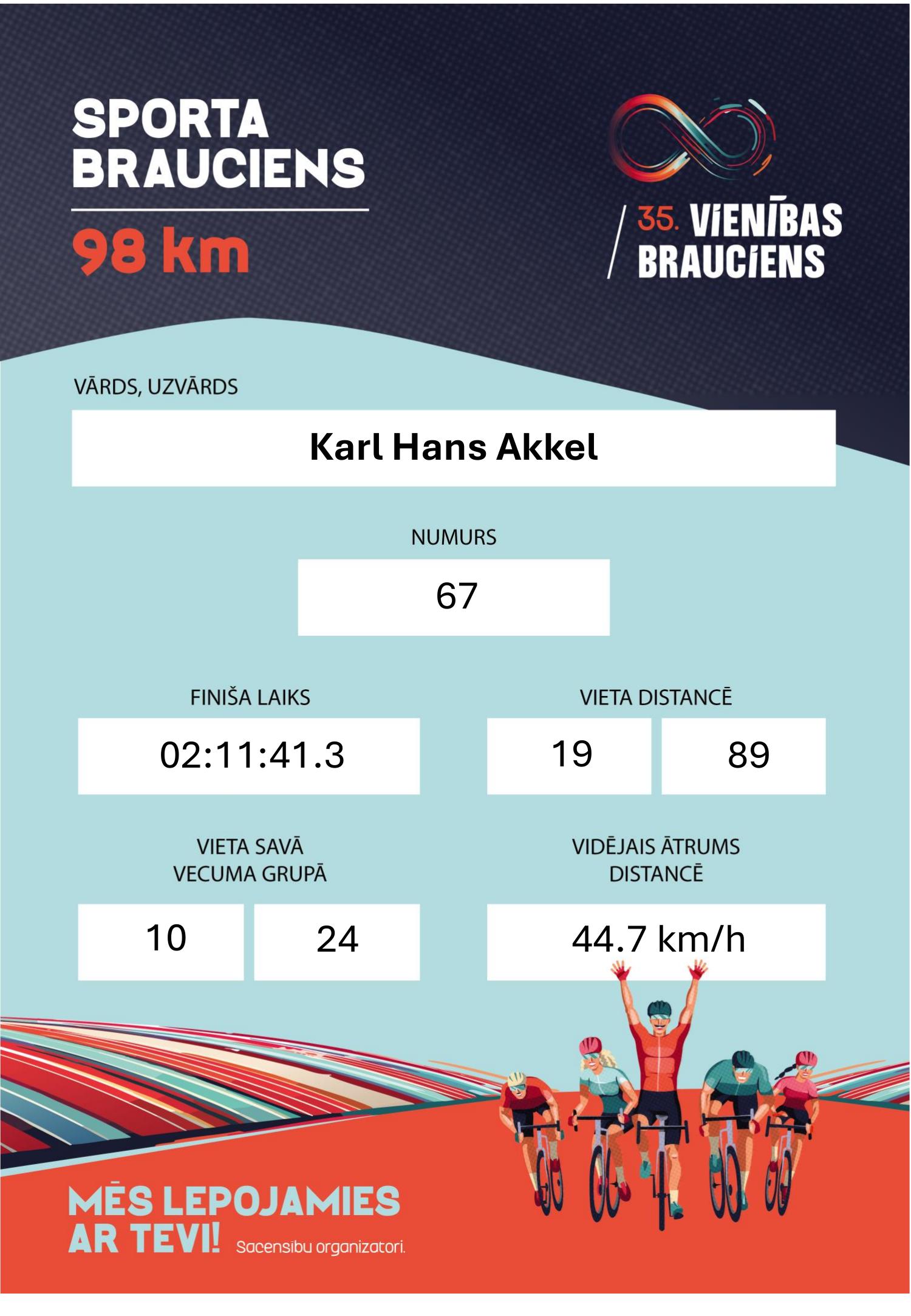 | 19 | 67 | Karl Hans Akkel | 1998 | 02:11:41.3 | +00:00:31.8 | Kalevi Jalgrattakool | 🇪🇪 EST | M CFA |