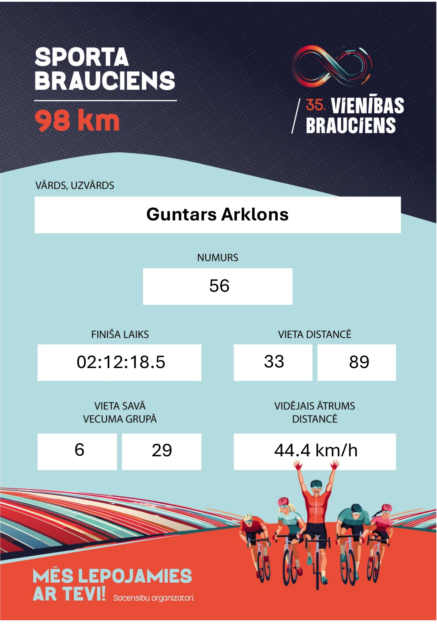 | 33 | 56 | Guntars Arklons | 1984 | 02:12:18.5 | +00:01:08.9 | — | 🇱🇻 LAT | M-35 |