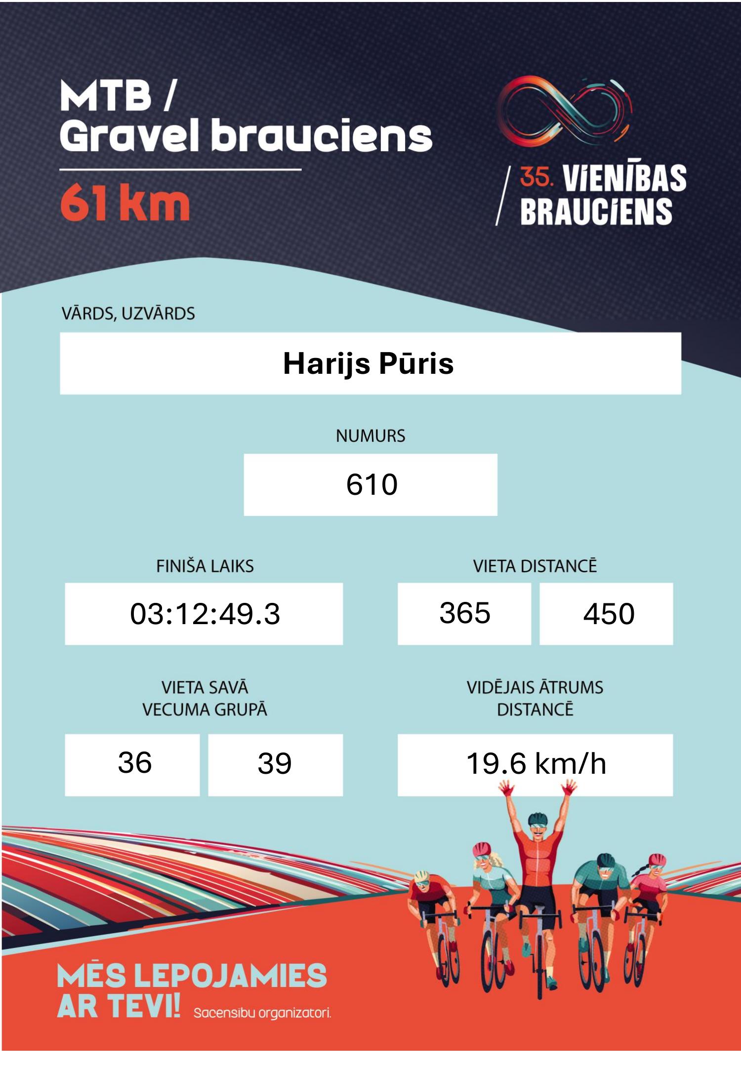 | 365 | 610 | Harijs Pūris | 1968 | 03:12:49.3 | +01:24:15.8 | Komanda Rīgas satiksme/ DASP | 🇱🇻 LAT | M-55 |