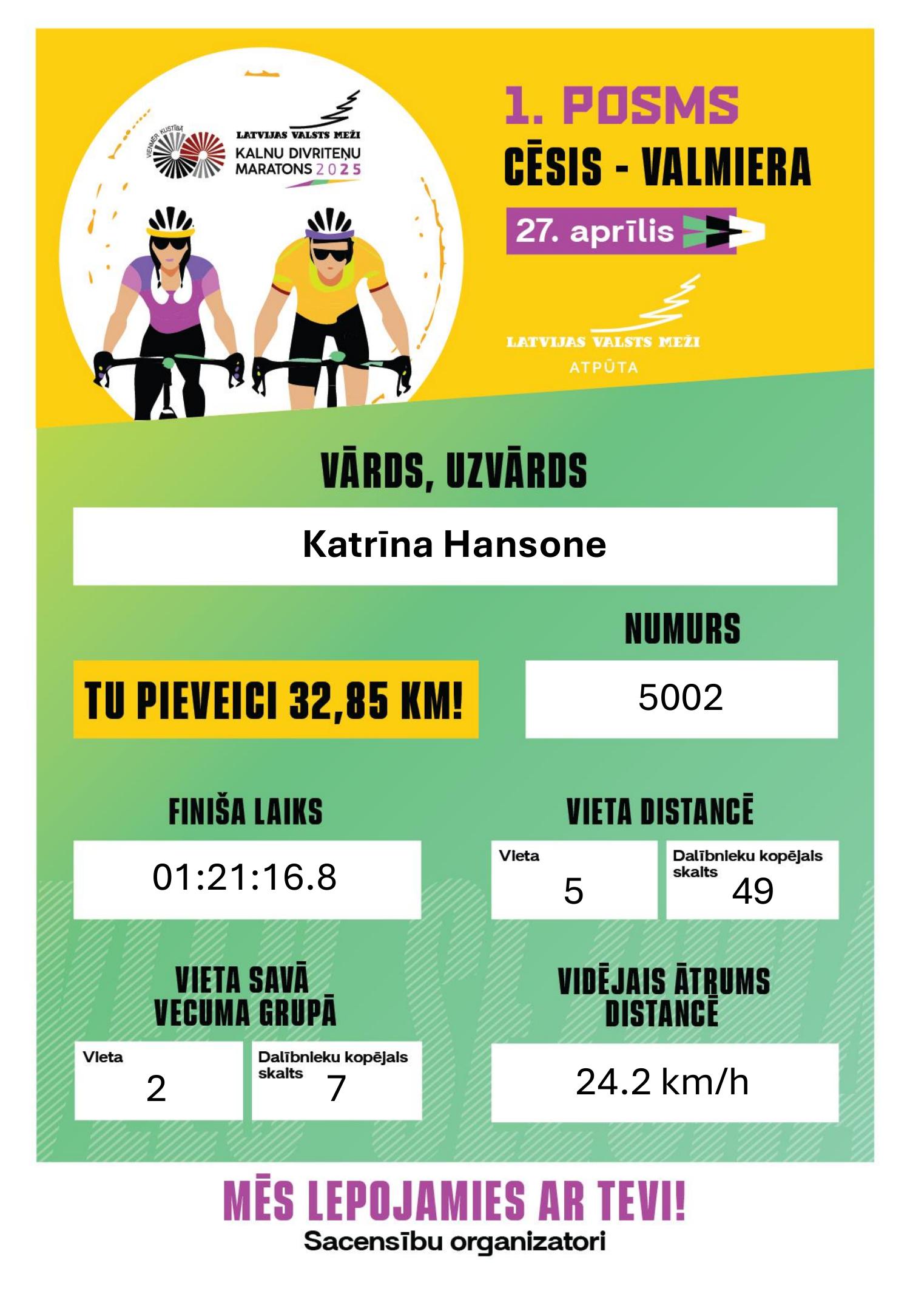 6 5007 Edžus Klieders 2013 01:21:33.6 +00:04:15.5 VeloLifestyle/SmiltenesBJSS 948 🇱🇻 LAT M12