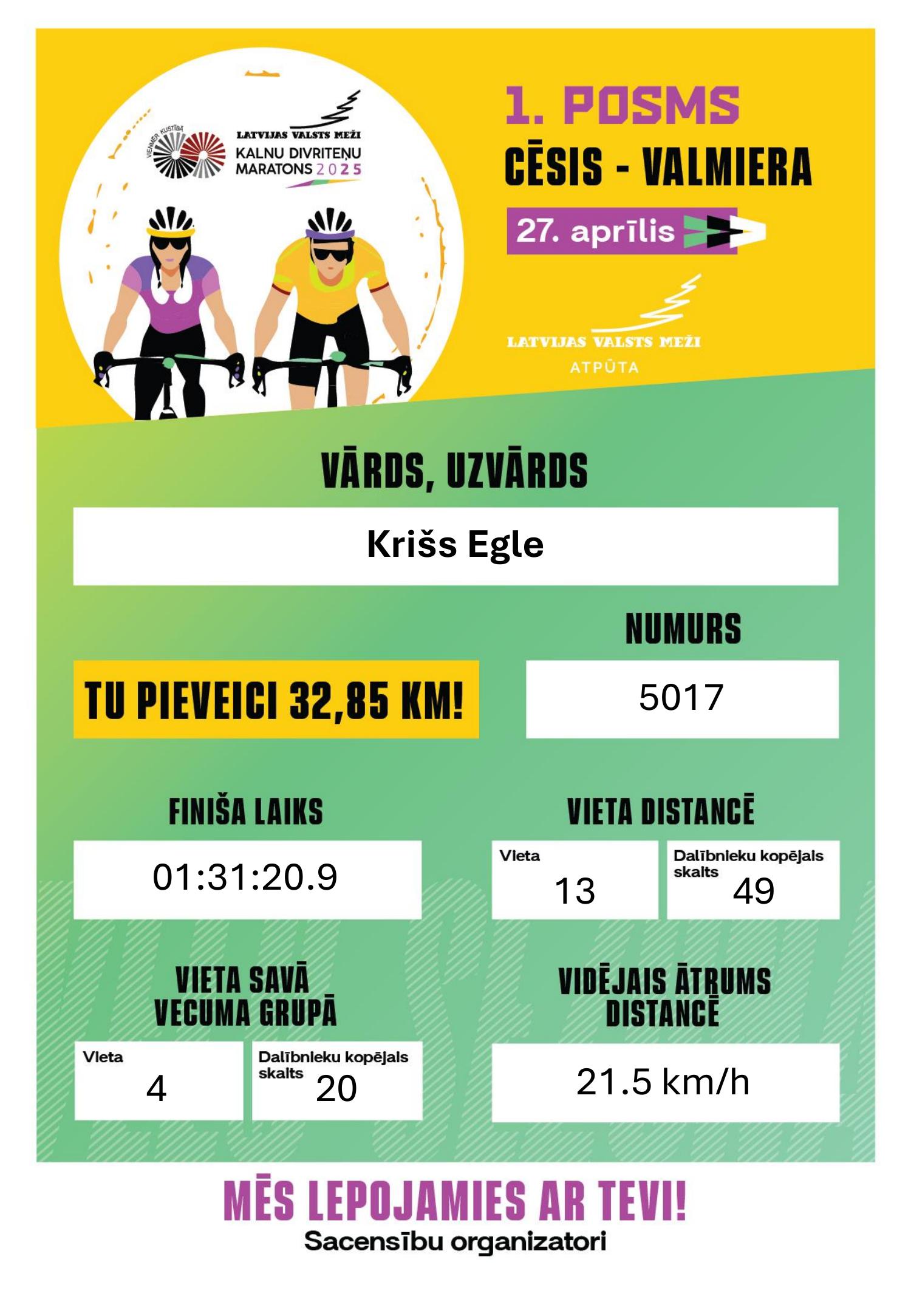 | 13 | 5017 | Krišs Egle | 2013 | 01:31:20.9 | +00:14:02.7 | RRS | 846 | 🇱🇻 LAT | M12 |