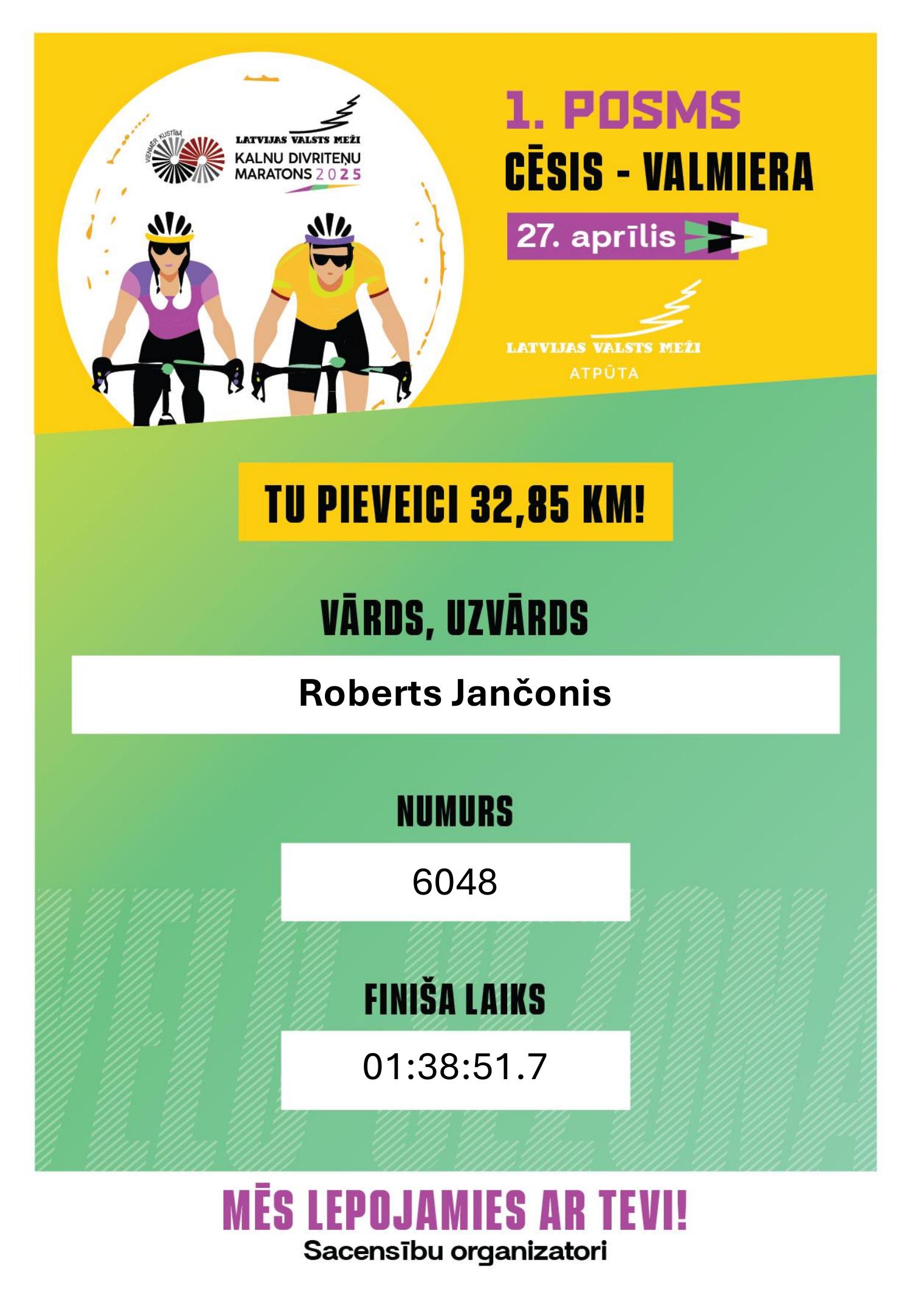 | 38 | 6048 | Roberts Jančonis | 1993 | 01:38:51.7 | +00:17:13.5 | DOTNUVA BALTIC LATVIJA | 826 | 🇱🇻 LAT | M-veselība |