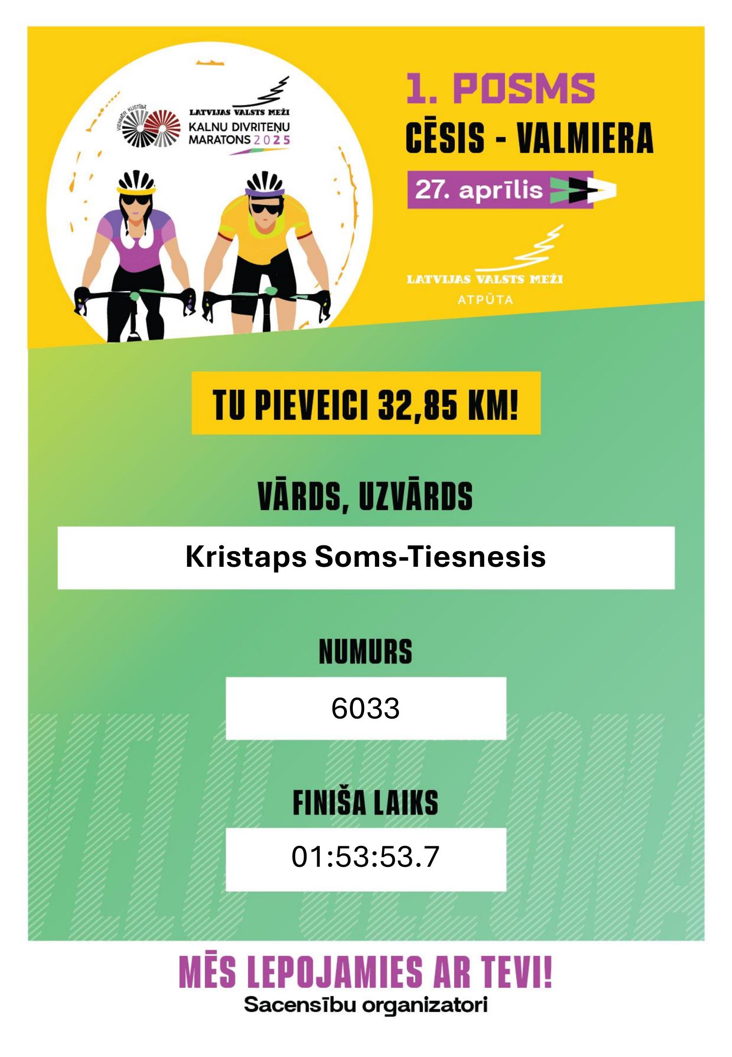 | 81 | 6033 | Kristaps Soms-Tiesnesis | 1989 | 01:53:53.7 | +00:32:15.6 | Koņanda | 717 | 🇱🇻 LAT | M-veselība |