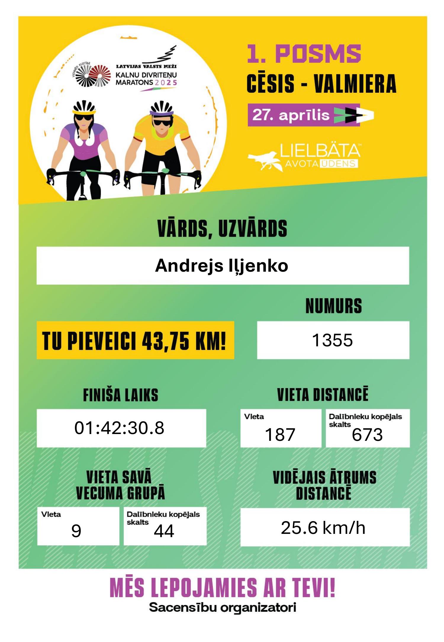 | 182 | 965 | Jānis Baklāns | 1981 | 01:42:17.5 | +00:19:07.3 | Riteņvasara | 732 | 🇱🇻 LAT | M40-44 |